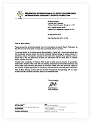 国际大学生体育联合会主席致感谢信