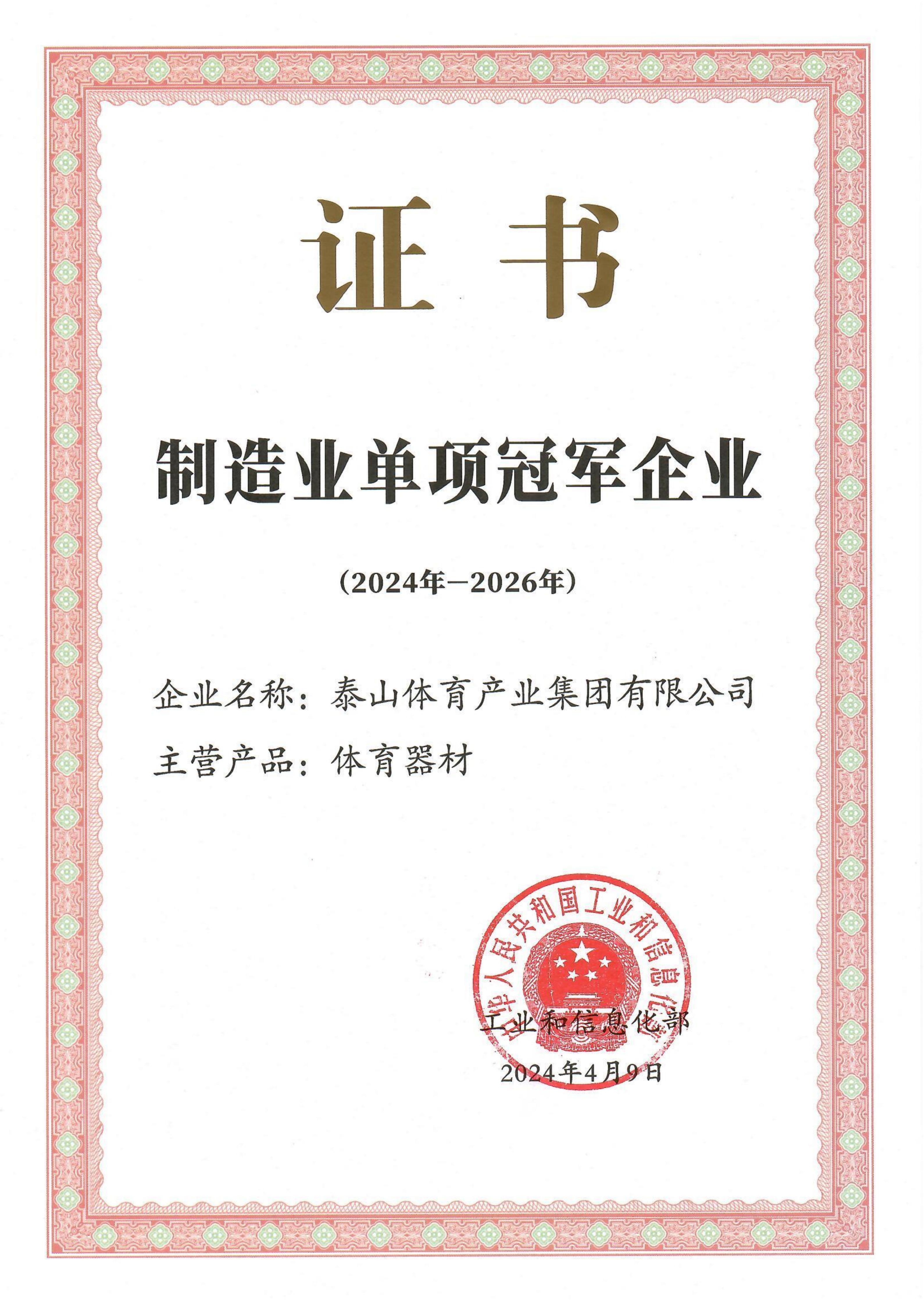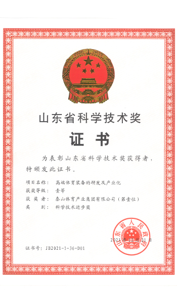 泰山体育是国家制造业单项冠军示范企业、国家技术创新示范企业、国家体育产业示范单位,拥有体育行业全国唯一的国家体育用品工程技术研究中心、国家级工业设计中心、国家体育用品竞技器材检测实验室、博士后科研工作站等多个国家级科研平台,通过国际单项协会认证的产品达200多项,主持和参与制定国际国内标准90余项。