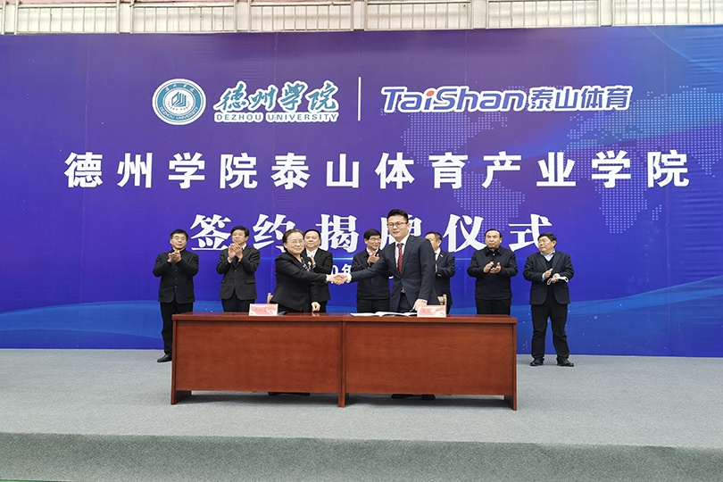 10月13日,2019中国(德州)体育产业交流大会在太阳能德州小镇开幕。大会由中国体育用品业联合会与德州市人民政府联合主办,山东省体育局支持,中国体育用品业联合会场馆事业工作委员会等单位共同承办。大会在 “融入京津冀助力新动能”的大背景下,以“德州智造·标准引领,助力体育产业升级”为主题,旨在充分展示区域体育产业发展成果,促进国际国内体育产业交流,扩大招商引资规模,搭建品牌商、渠道商和消费者展示与互动平台。开幕式上,泰山体育产业集团荣获“明星企业”称号。