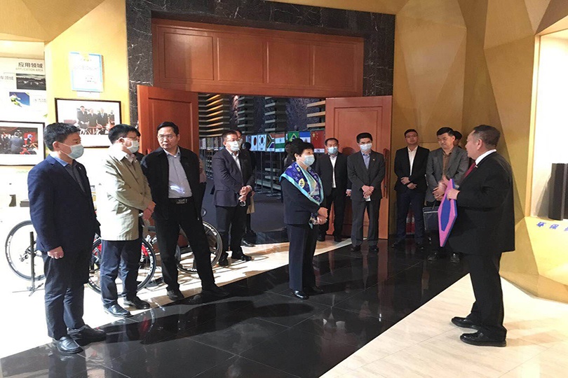 12月23日,印度尼西亚奥委主席、亚洲自行车联合会第一副主席拉贾·奥克托哈里一行与中国自行车运动协会副秘书长袁媛来泰山体育参观考察。