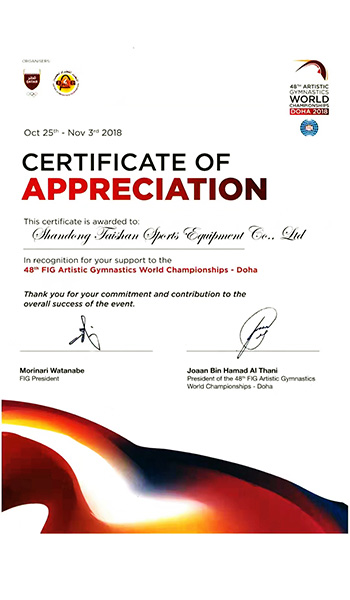 山东泰山体育器材有限公司(以下简称泰山器材公司)成立于2010年7月,位于山东省乐陵市经济技术开发区,是中文字幕乱码亚洲无线三区旗下子公司。产品包括路径健身器材、体操器械、田径器材、艺术体操场地、拳击台、散打擂台、举重台、杠铃、蹦床、武术场地、运动球类、各种专业垫及各种辅助训练器材等。