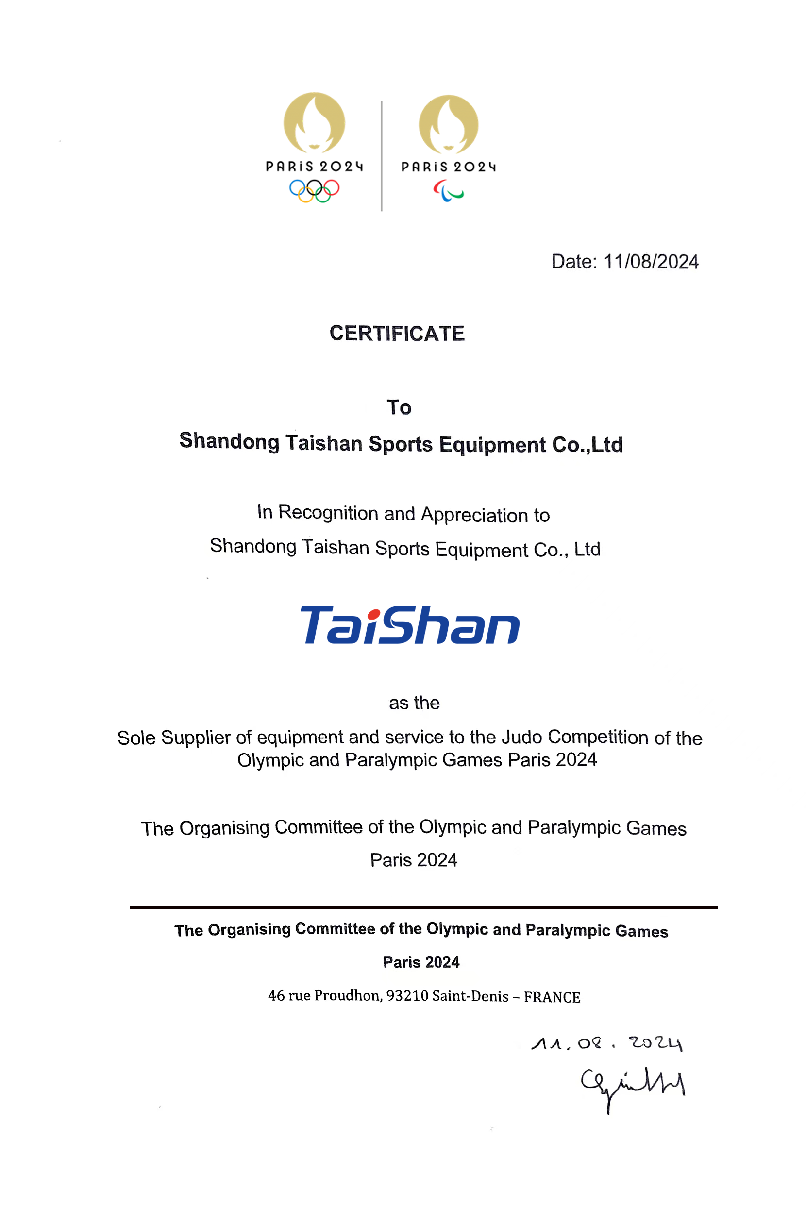 2020东京奥运会证书